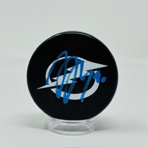 Janis Moser Autographed Tampa Bay Lightning Florida Blue Hockey Puck JSA COA
