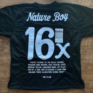 Ric Flair Autographed Black Wrestling WCW WWF 16x World Champion Jersey Shirt JSA COA