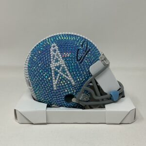 Calvin Ridley Autographed Houston Oilers Custom Beaded Throwback Mini Helmet Beckett BAS