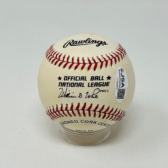 Enos Slaughter Autographed St Louis Cardinals ONL Baseball. JSA authenticated with matching card.