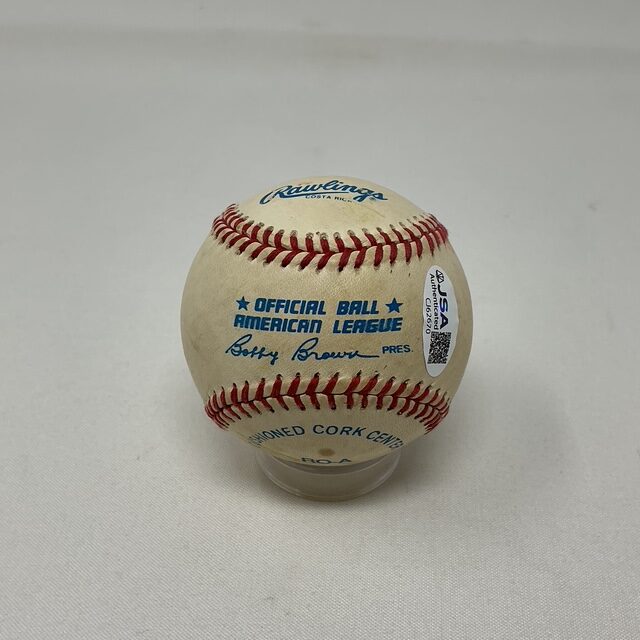 Nolan Ryan Autographed Texas Rangers Long Signature OAL Baseball. JSA authenticated with matching card.