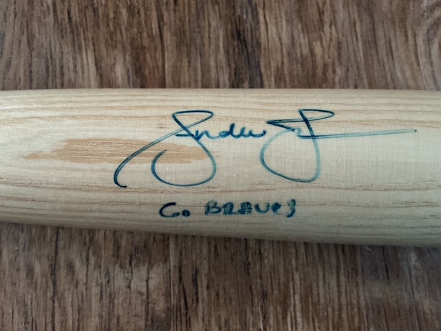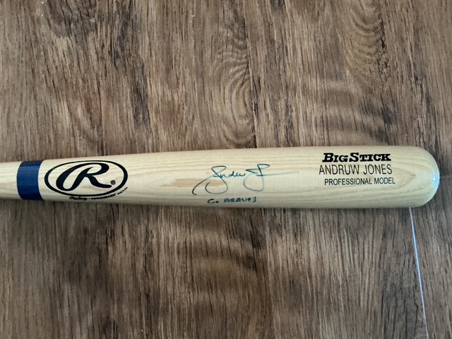 Andruw Jones Autographed Atlanta Braves GO BRAVES Big Stick Bat. Radtke authenticated with matching card.