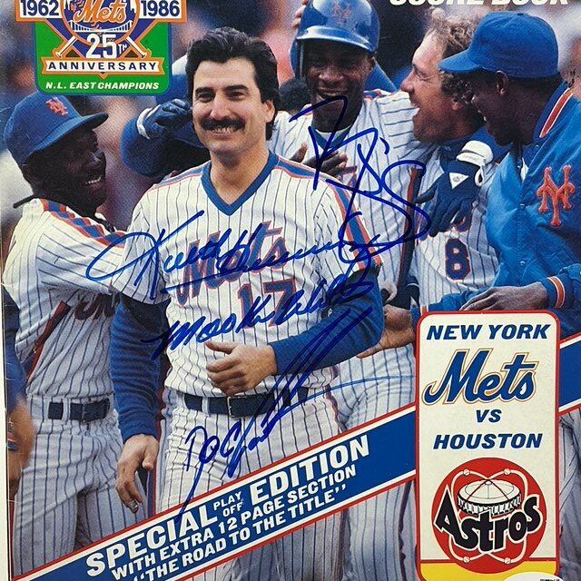 1986 New York Mets Autographed Championship Series Score Book Magazine Multi Signed. JSA authenticated with matching card.