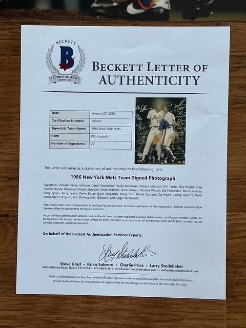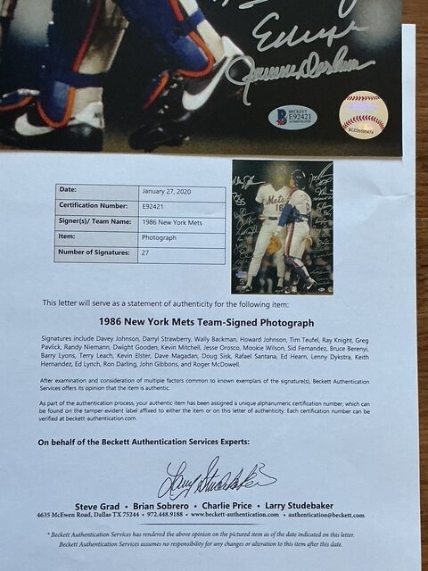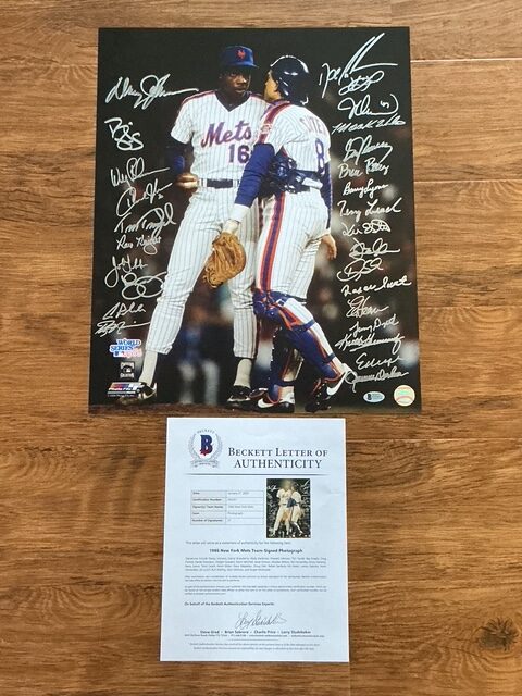 1986 New York Mets Team Signed 27 Autographs World Series 16X20 Photograph. Beckett authenticated with full letter of authenticity.