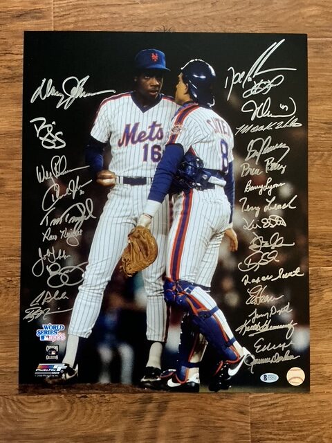 Signed by Davey Johnson, Darryl Strawberry, Wally Backman, Howard Johnson, Tim Teufel, Ray Knight, Greg Pavlick, Randy Niemann, Dwight Gooden, Kevin Mitchell, Jesse Orosco, Mookie Wilson, Sid Fernandez, Bruce Berenyi, Barry Lyons, Terry Leach, Kevin Elster, Dave Magadan, Doug Sisk, Rafael Santana, Ed Hearn, Lenny Dykstra, Keith Hernandez, Ed Lynch, Ron Darling, John Gibbons and Roger McDowell.