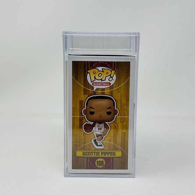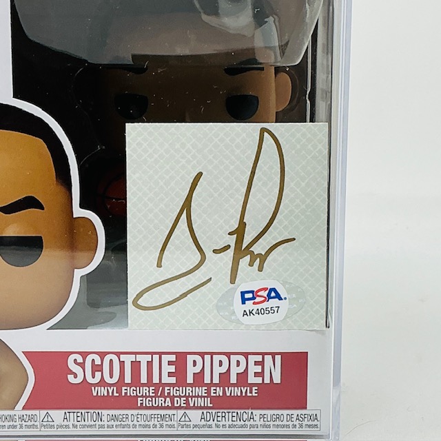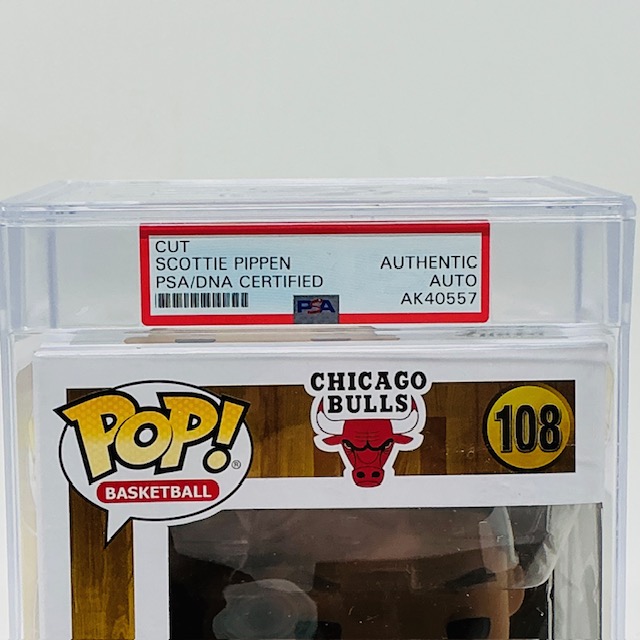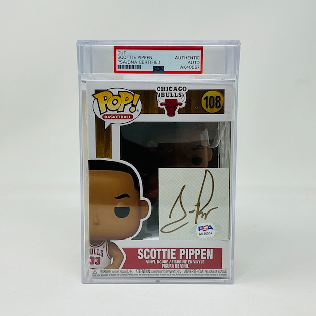 Scottie Pippen Autographed Chicago Bulls Cut Funko Pop Basketball #108. PSA authenticated and Encapsulated.