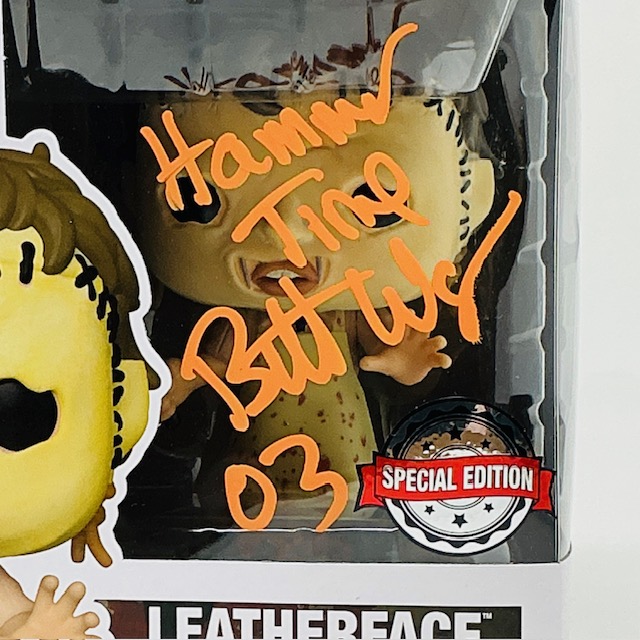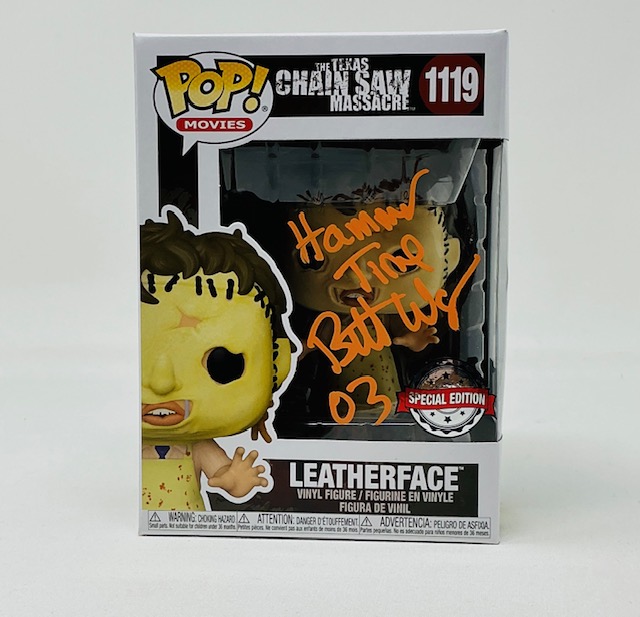 Brett Wagner Autographed Texas Chainsaw Massacre Leatherface Funko Pop #1119. OC Marketing authenticated.
