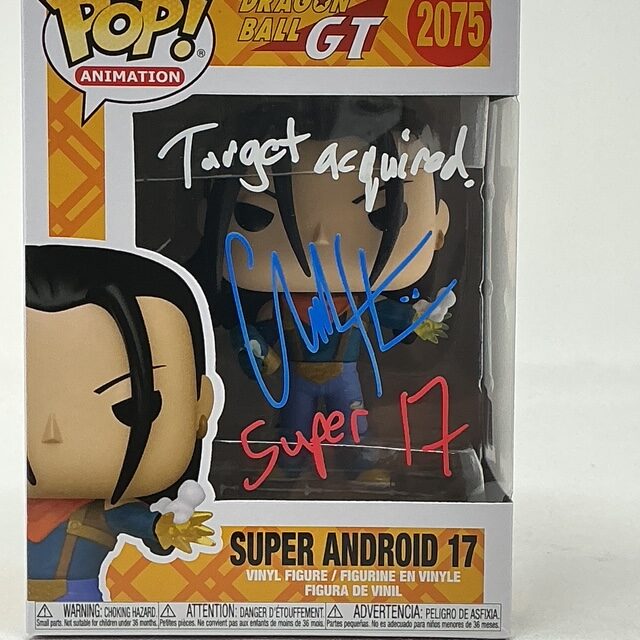 Chuck Huber Autographed Super Android 17 Dragon Ball GT Funko Pop #2075. OC Marketing authenticated.