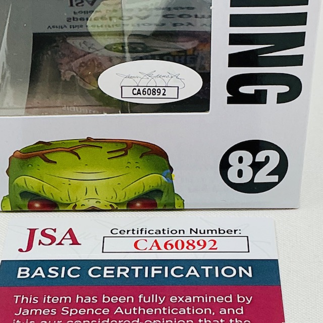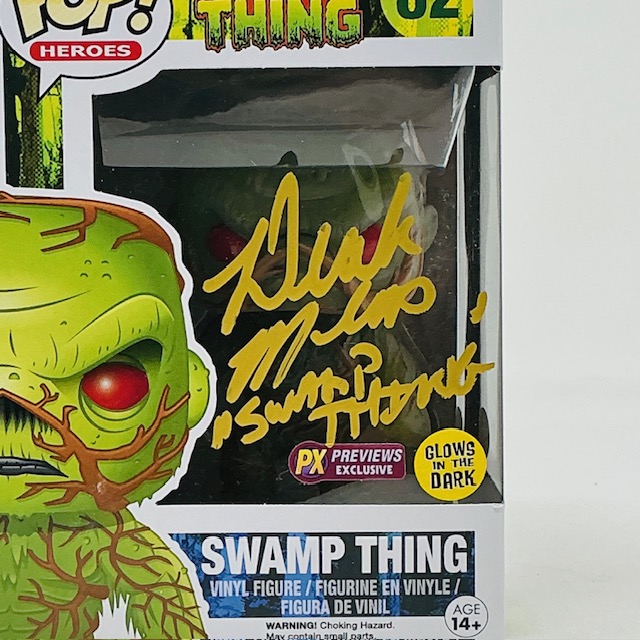 Derek Mears Autographed DC Universe Swamp Thing Funko Pop Heroes #82 PX Exclusive. JSA authenticated with matching card.
