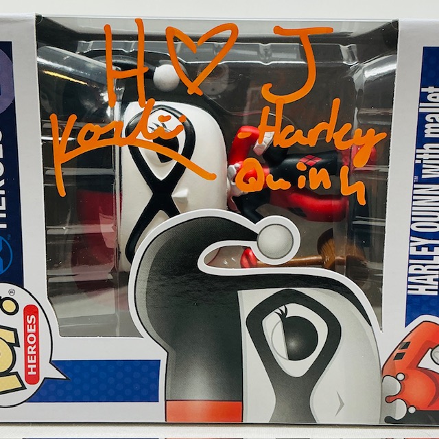 Karlii Hoch Autographed DC Super Heroes Harley Quinn With Mallet Funk Pop #45. OC Marketing authenticated.