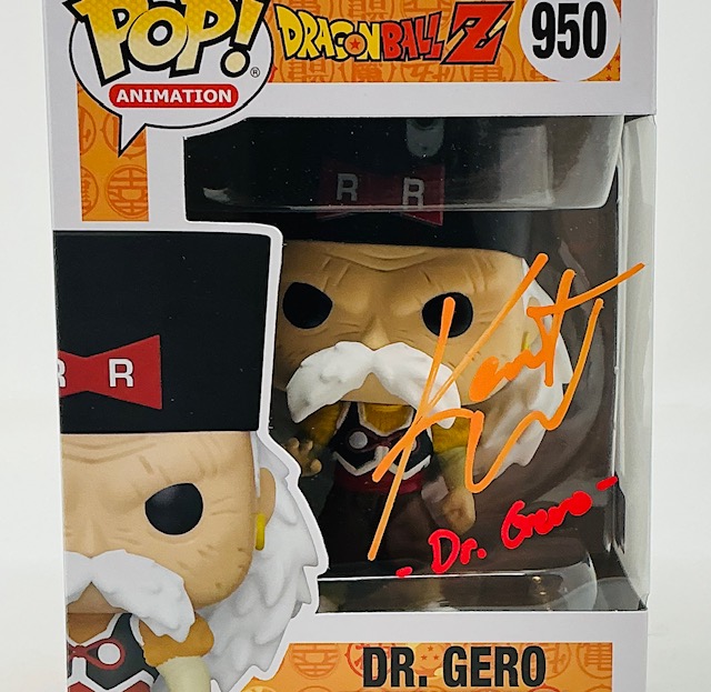 Kent Williams Autographed Dr. Gero Dragon Ball Z Funko Pop #950. OC Marketing authenticated.