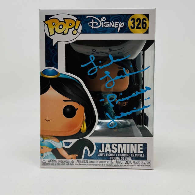 Linda Larkin Autographed Princess Jasmine Disney’s Aladdin Funko Pop #326. OC Marketing authenticated.