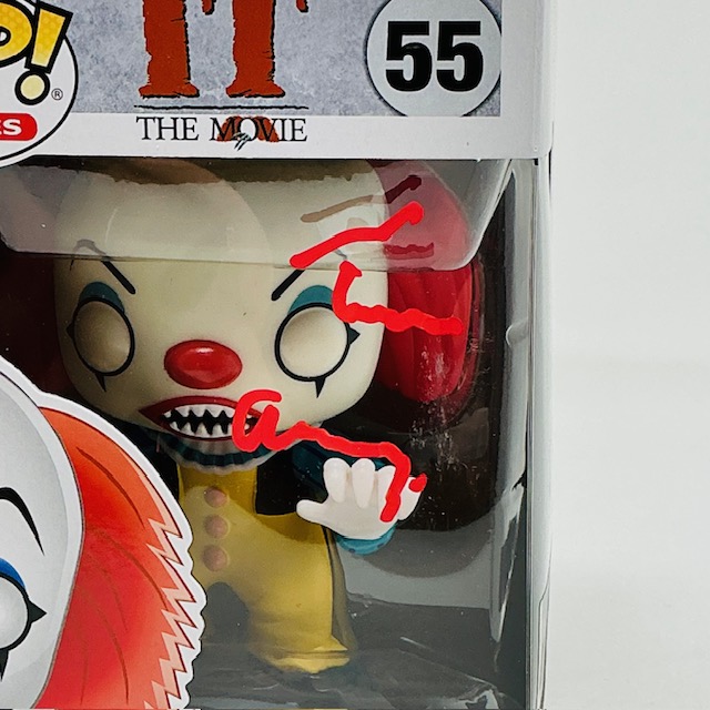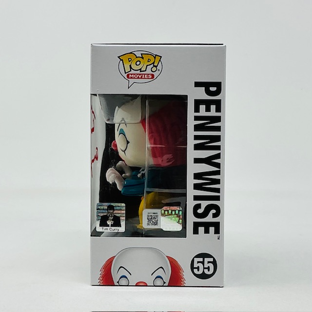 Tim Curry Autographed Horror Pennywise IT The Movie Funko Pop #55. OCCM Marketing and Tim Curry authenticated.