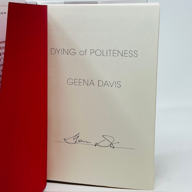 Geena Davis Autograph Copy of Dying of Politeness Hardcover Book Signed Edition.