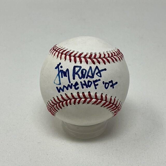 Jim Ross Autographed WWE Play-By-Play Commentator HOF 07 ROML Baseball. JSA authenticated with matching card.