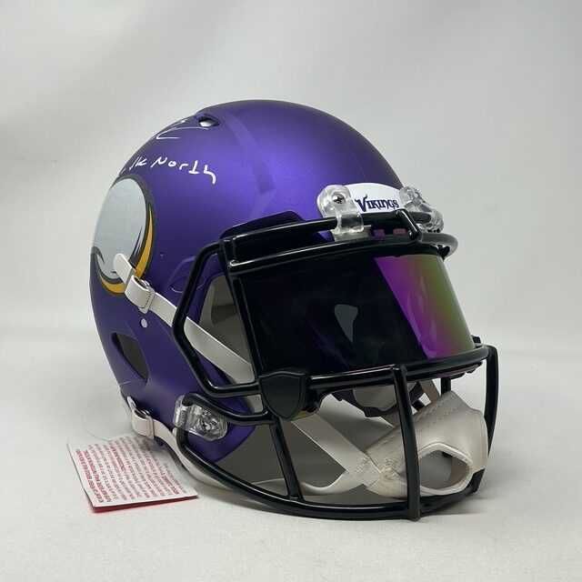 Jordan Addison Autographed Minnesota Vikings Fear the North Authentic Full Size Helmet W/ Visor. Beckett authenticated.