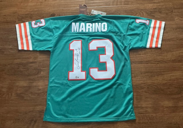 Dan Marino Autographed Miami Dolphins HOF 05 Authentic NWT 1984 Throwback Jersey. Beckett authenticated.