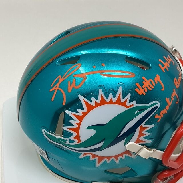 Ricky Williams Autographed Miami Dolphins Smoking Inscription Mini FLASH Helmet. Beckett authenticated.